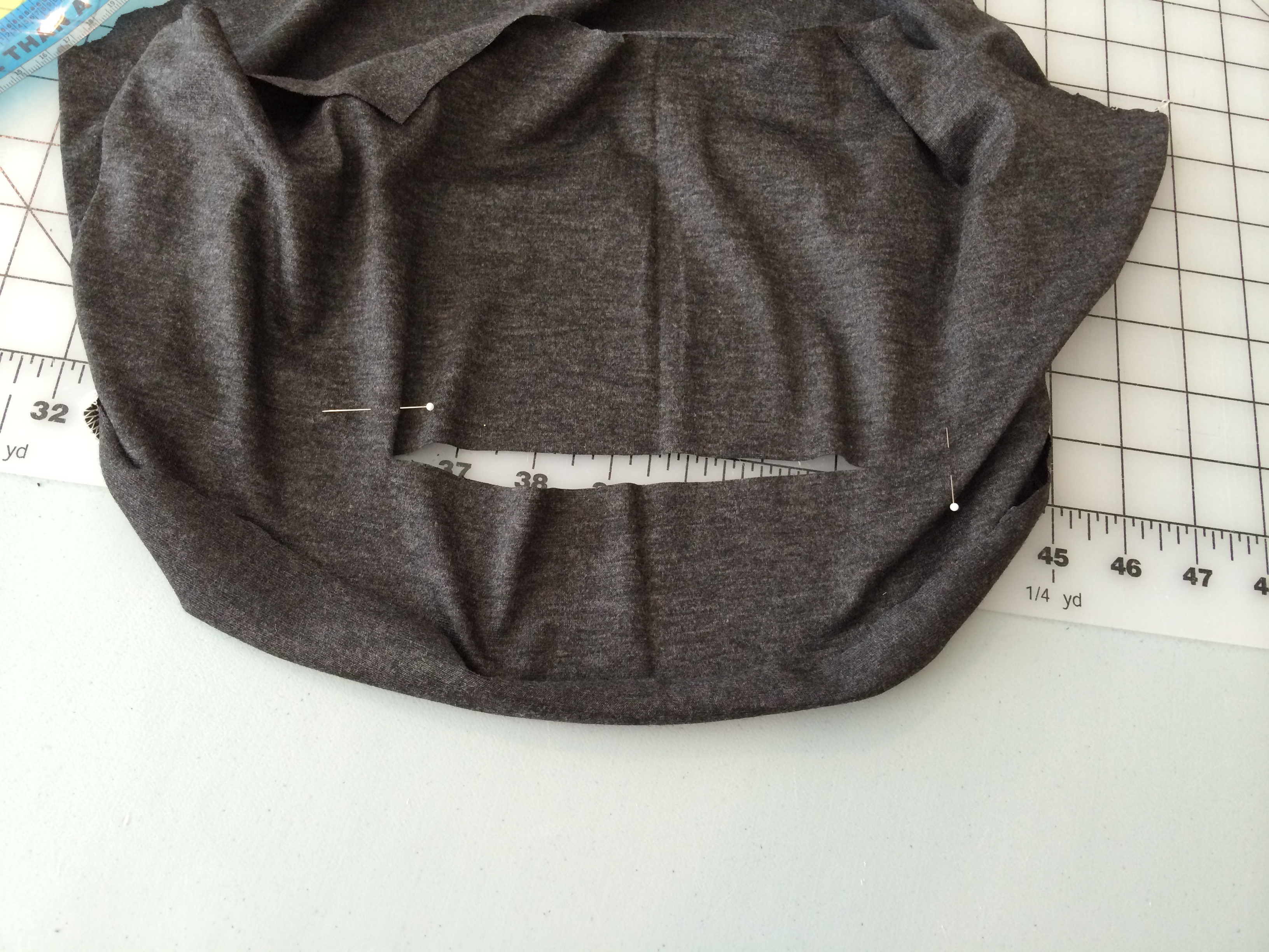 Adding the elastic waist was easy since I didn’t have to maneuver the elastic through a slit, which I hate! It was sewed on with a zig-zag stitch, the pulled around creating a waist-band. I tried to make the seam look as finished as possible.