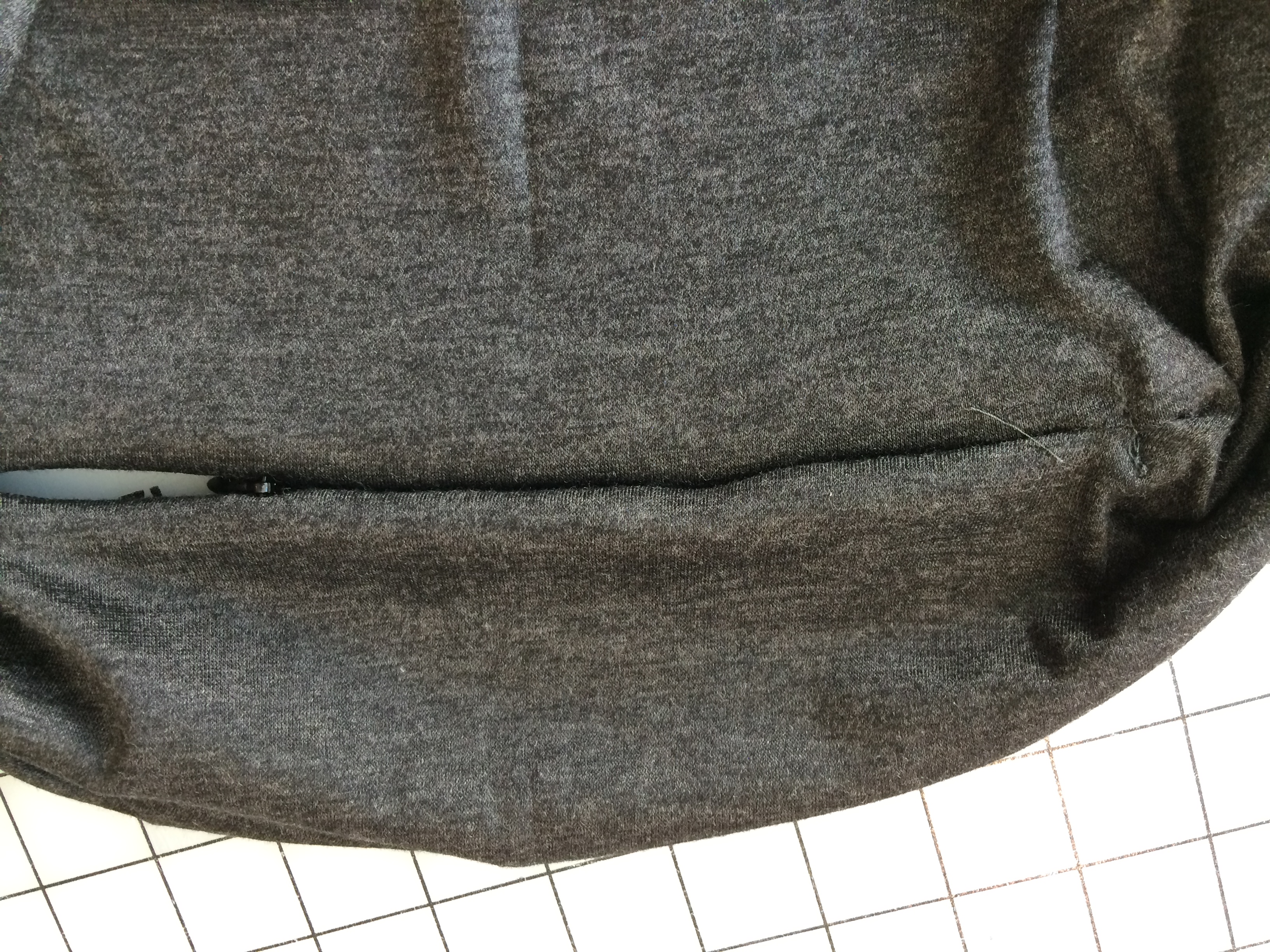 I cut two panels of each and serged the front and back of each separately. I then stitched the waist pieces together, seams on the inside, and used it as one piece when attaching the legs. I used a serger on all the seams, because, you know…knit. I decided to use an invisible zipper for the back pocket, in order to keep that clean, legging-like look. I cut a slit on the back panel, sewed in my invisible zipper (cut to fit), and sewed a seam on either side in order to make the pocket a reasonable size. Oh, and if you are wondering, I did install the zipper before sewing all the pieces together. Much easier working with one flat piece.