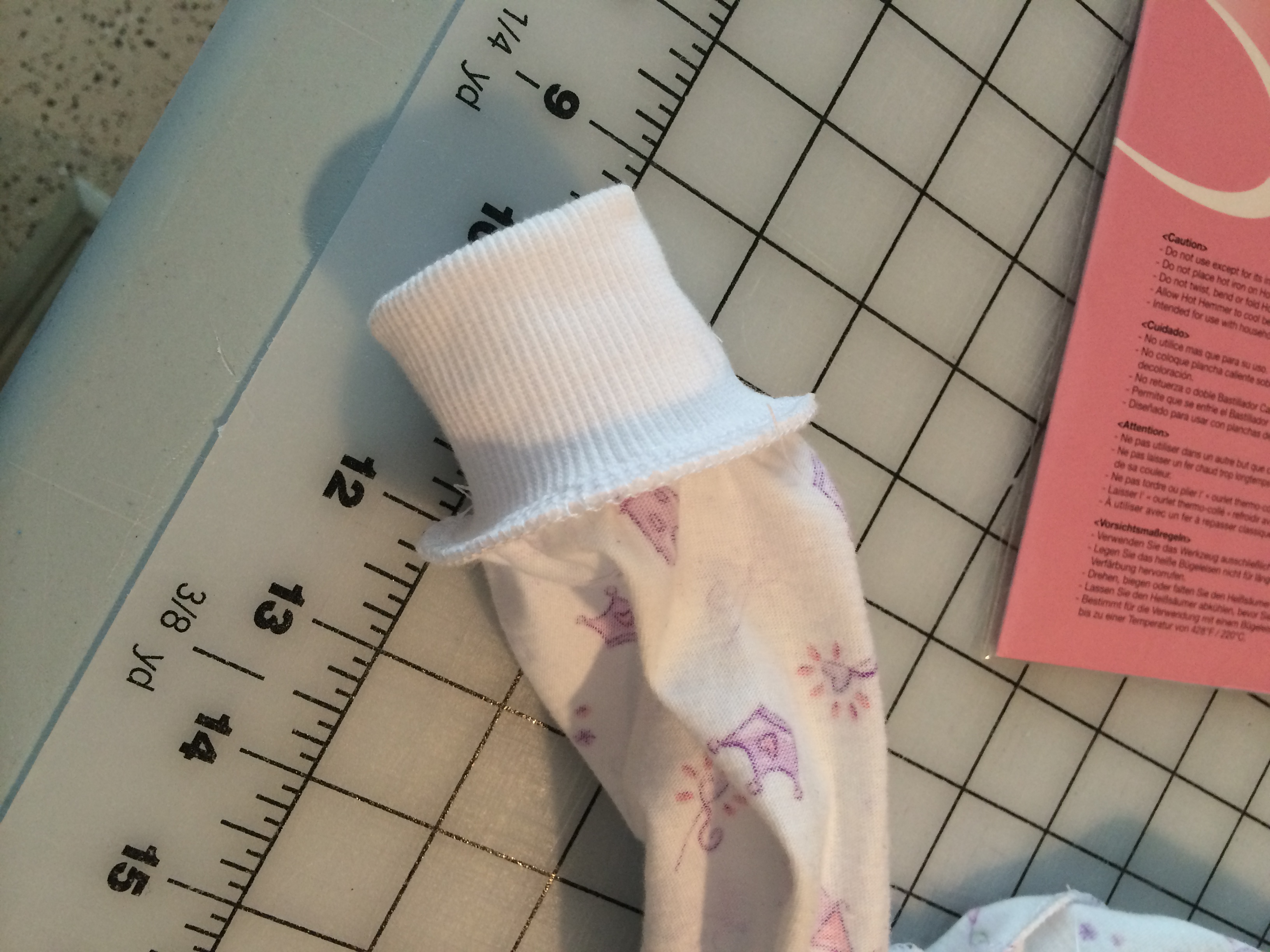 Well at least I could make the sleeve cuffs, even if I couldn’t sew them on. I got a bit confused on the directions here – I thought I had them correctly until I looked at the picture. WRONG! It was pretty clear on the picture that the ribbings were going the opposite way than I had them. So I re-cut and sewed them the opposite way.
