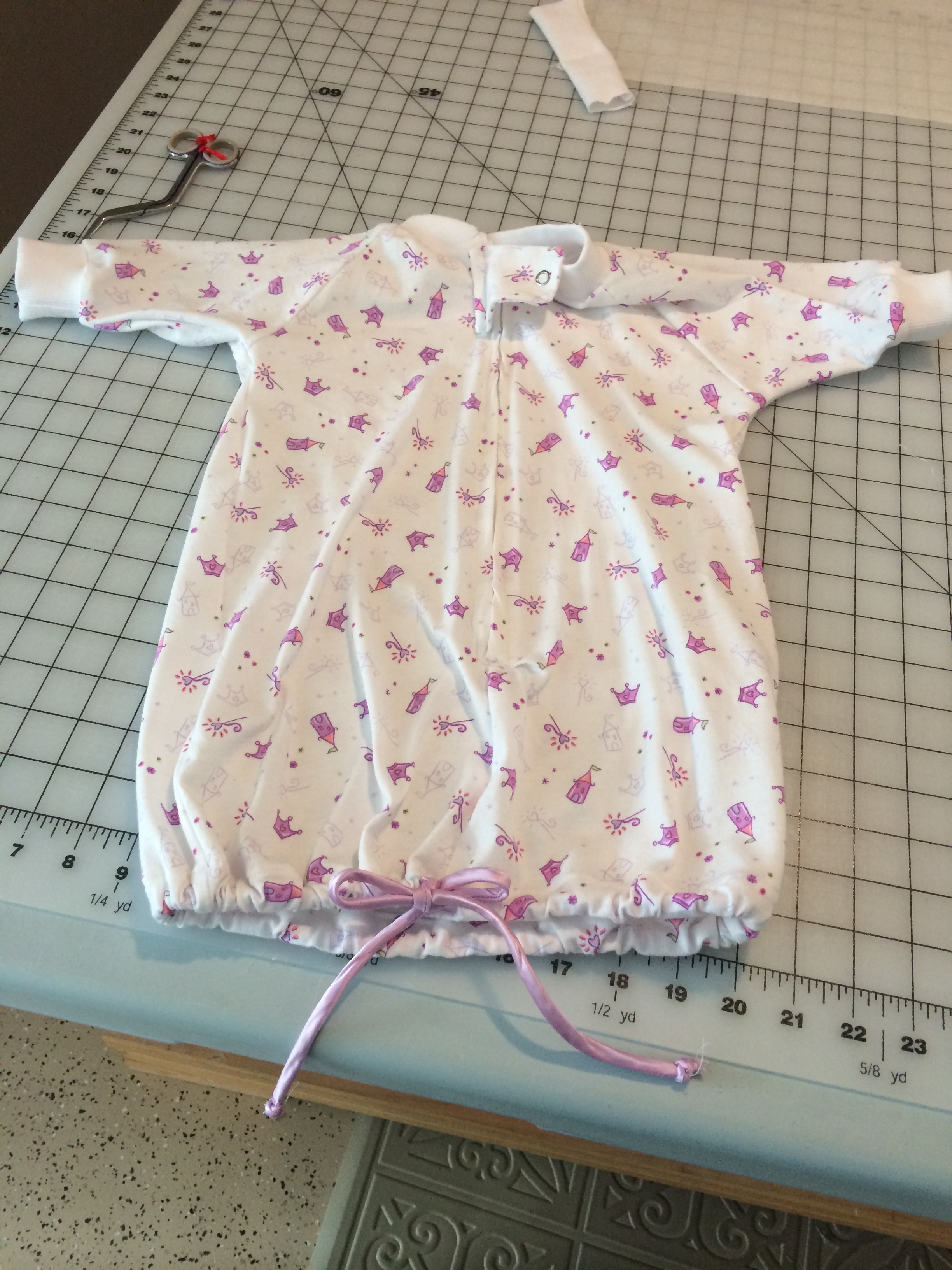 First of all, when I borrowed this pattern I started looking at all the wonderful fleece that was available (and on sale!). I had picked out something perfect for a baby girl when I remembered that my friend was due in April. This was a newborn sleep sack that she would not be wearing as a newborn. WRONG! I immediately picked out some cute cotton knit instead.