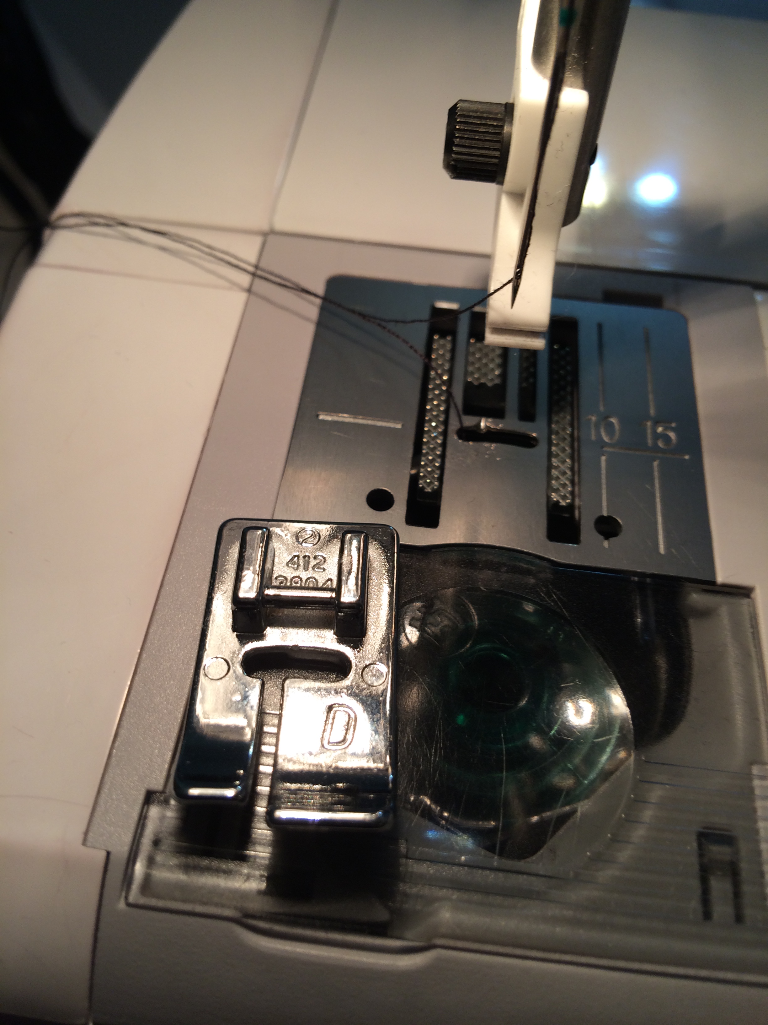 So I tried a couple more times…and it took a few minutes to realize my stitches were the reverse of what was on the video. Hmmmm, was my machine sewing backwards? Did they screw something up at the shop when I got it fixed. Then I looked at my book real quick – I was on the wrong stitch. I have no idea what stitch I had the setting on, but it was not the blind hem. I tried this again: