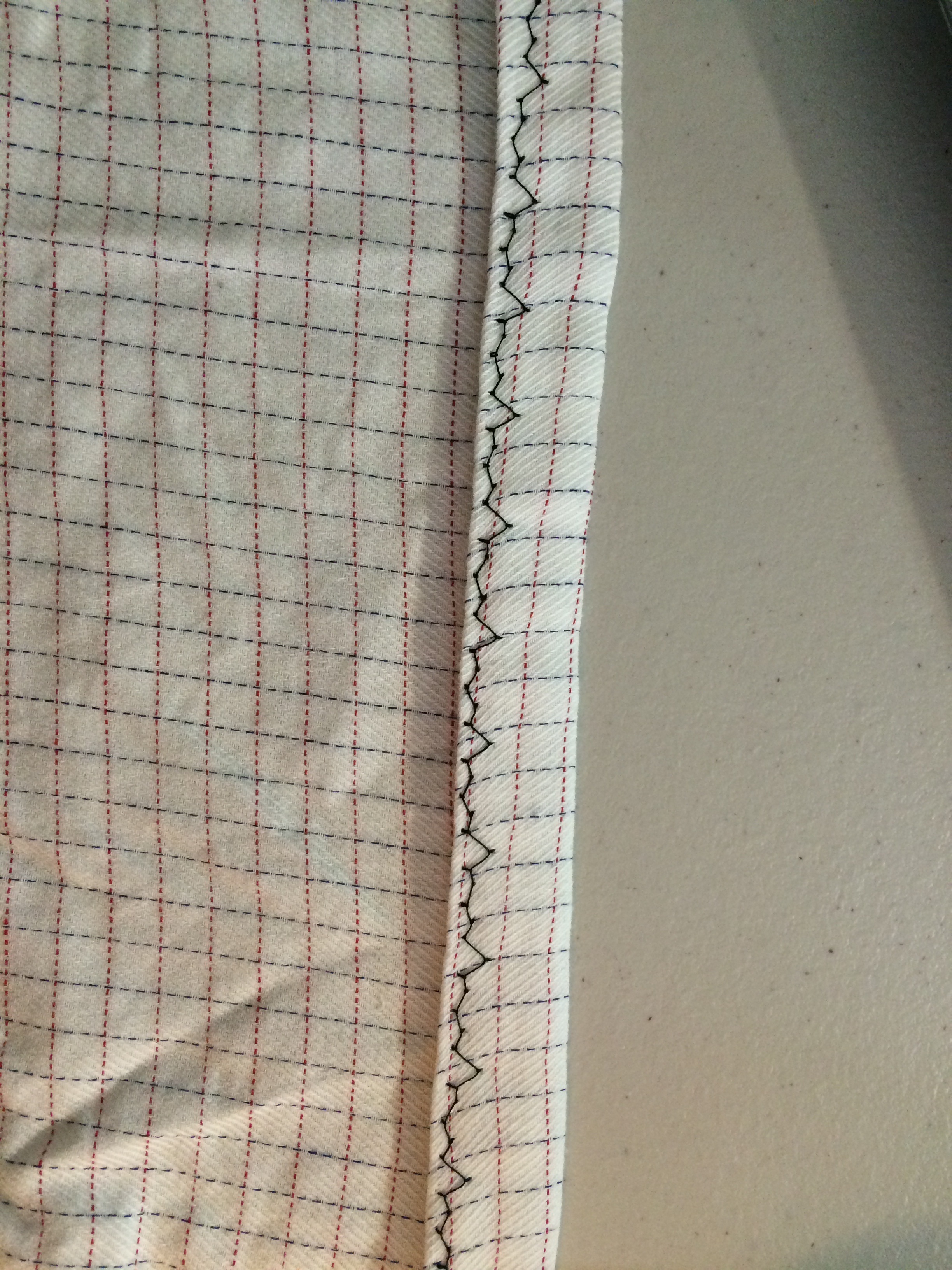 …Well I don’t have a close-up picture of the actual hem, but I assure you it came out great! It was not difficult and so fast and efficient. With the plaid material, the small ticks on the outside are hardly seen at all. I will definitely try this stitch out again – so much better than hand stitching!