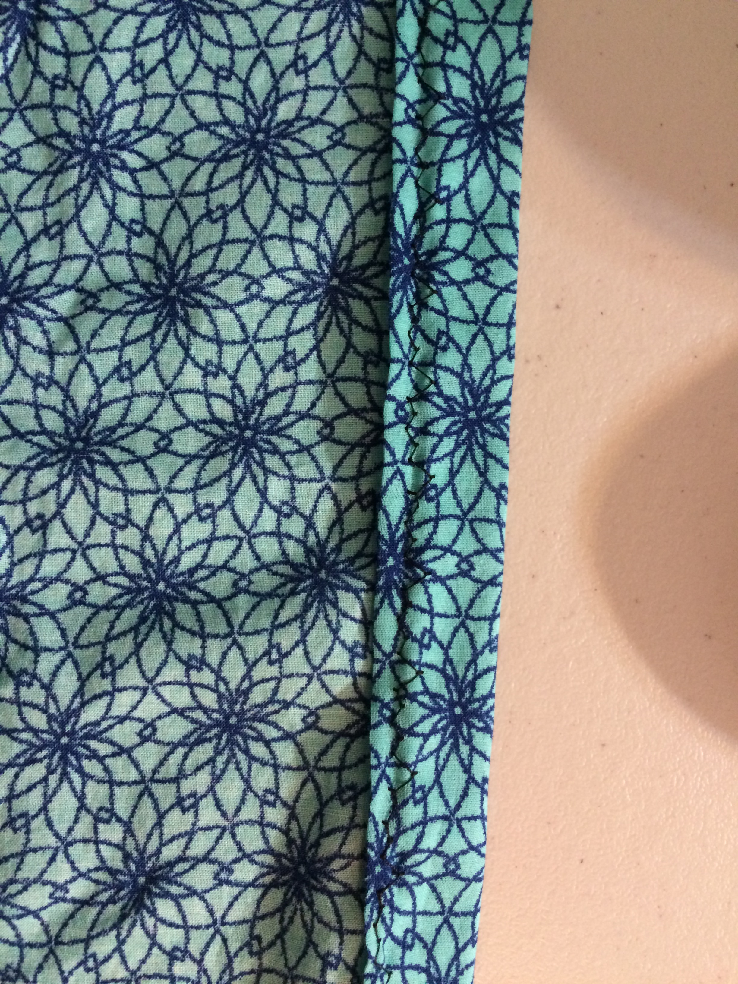 I have to admit – I was really scared to do this. I’ve read so many posts from people who attempt using the blind hem stitch and fail miserably, only to quit and hand sew. I was pretty confident this was not going to work, especially since I am so new to sewing. I started out by watching a few videos, but then became confused when I looked at what my machine called a blind hem foot. Then I did a search for instructions using my viking machine and it all made sense. This was the tutorial that finally cleared it all up for me – it totally made sense after watching it. But then I tried it on some scrap….and it wasn’t working at all.