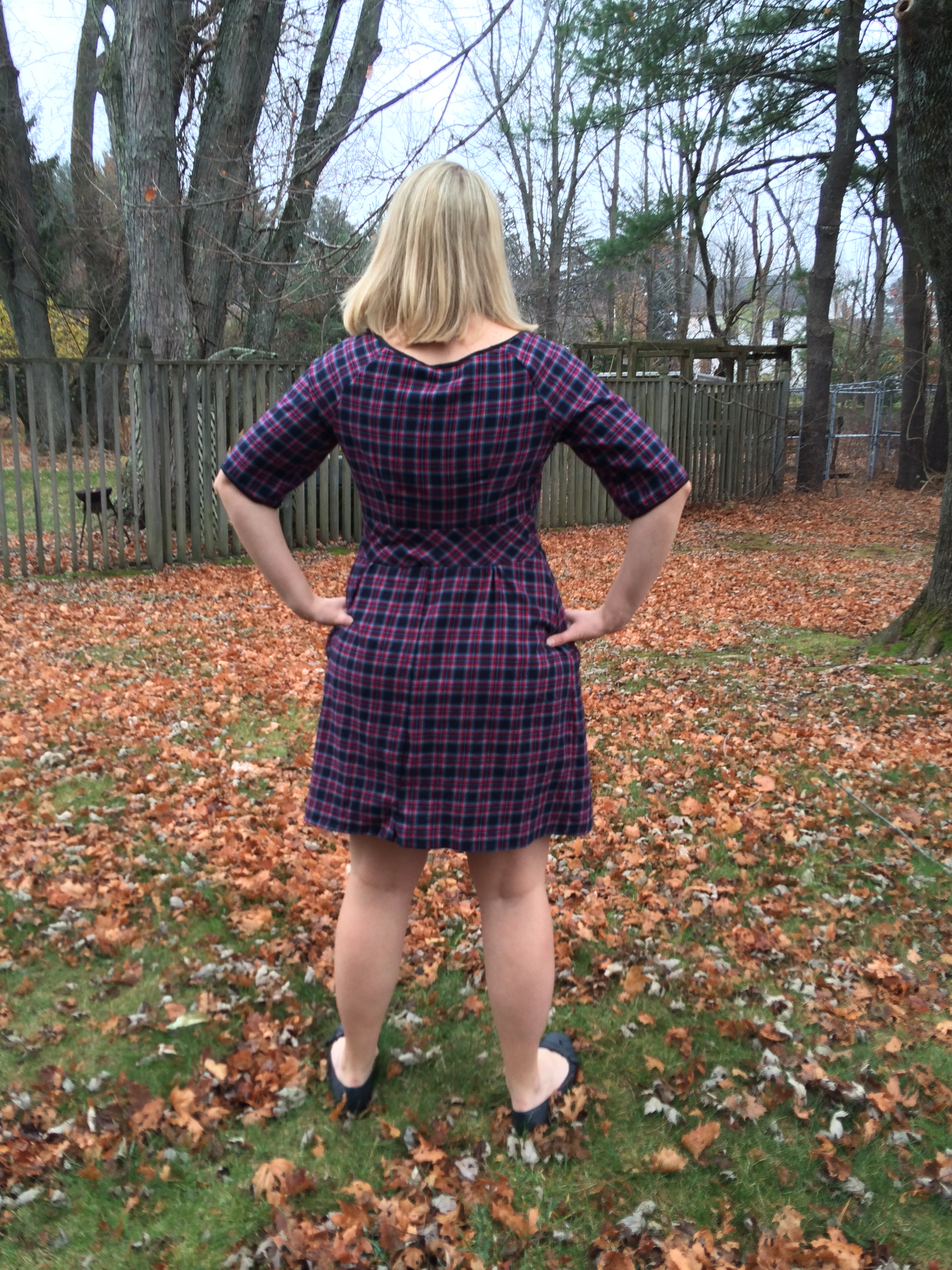 Well I didn’t get everything exactly matched, especially on the sleeves, but I think I did as well ad I could. And speaking of sleeves, I didn’t realize they would be so long when initially looking at the pattern. Although, looking now at the website, I can see they are definitely at the elbow, so this is my oversight. If I made this again, I think I would want them a bit shorter. That might be a bit challenging since they are raglan sleeves and shaped quite different than the sleeves I am used to. For this dress I think it works, since the colors do go well with the fall season and colder weather.