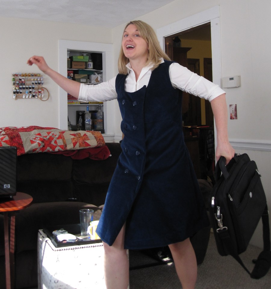 Oh! Wouldn’t it have been great if I could have finished this right when Mad Men was ending! Of course that was last May, almost a year ago. As I watched the final season, I really wanted to make one of those vintage jumpers from the ’60’s. I think I even had this pattern already. But work ramped up and I never got around to it. My mom gave me some royal blue corduroy last fall and I thought, “This will be perfect for this.” But again things were busy at work and I only managed to cut it out. As the year ended I started buying the buttons and some of the other notions I would need. I started making the darts, but had to set it down as the holidays approached. Obligations and lack of time again. In January I began to chip away at it, step by step. But I couldn’t quite finish it until mid-February, especially with all that hand sewing.