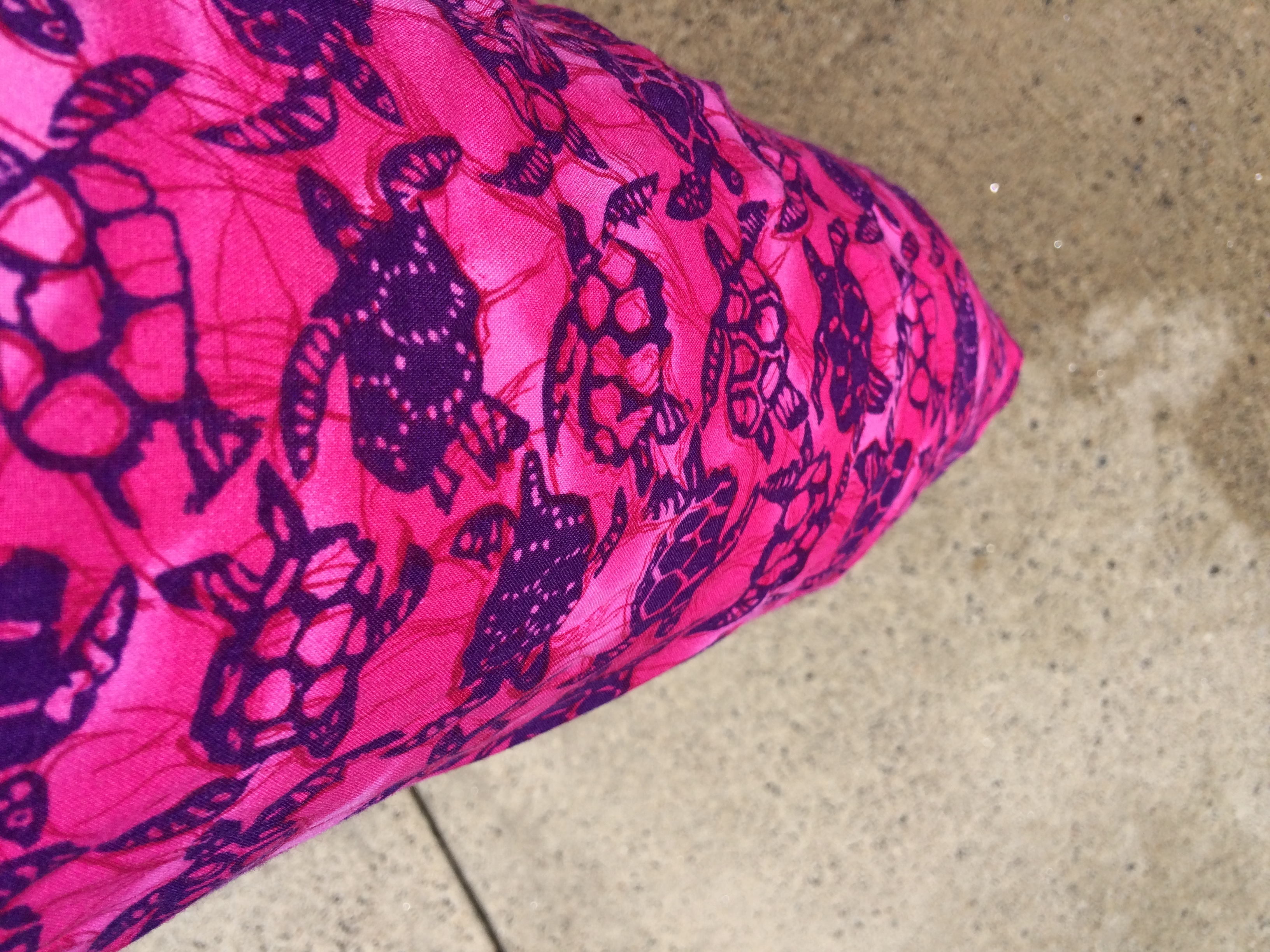 Even though I am writing this post the beginning of autumn, I actually did finish this project in the height of summer.  My summer sewing productivity was a bust. As I noticed the days getting shorter, I realized I did not have enough time to make the shorts I wanted in the time I would be able to enjoy them.  I needed a quick win, and this bathing suit cover up was just the thing.  I bought this pink turtle-print rayon a while back with the intention of making a bathing suit cover up.  Rayon is just such a cool, lightweight fabric and the turtles gave it a slightly tropical look.  The problem was finding the right pattern – one that was simple enough to sew quickly but also stylish enough to be unique.