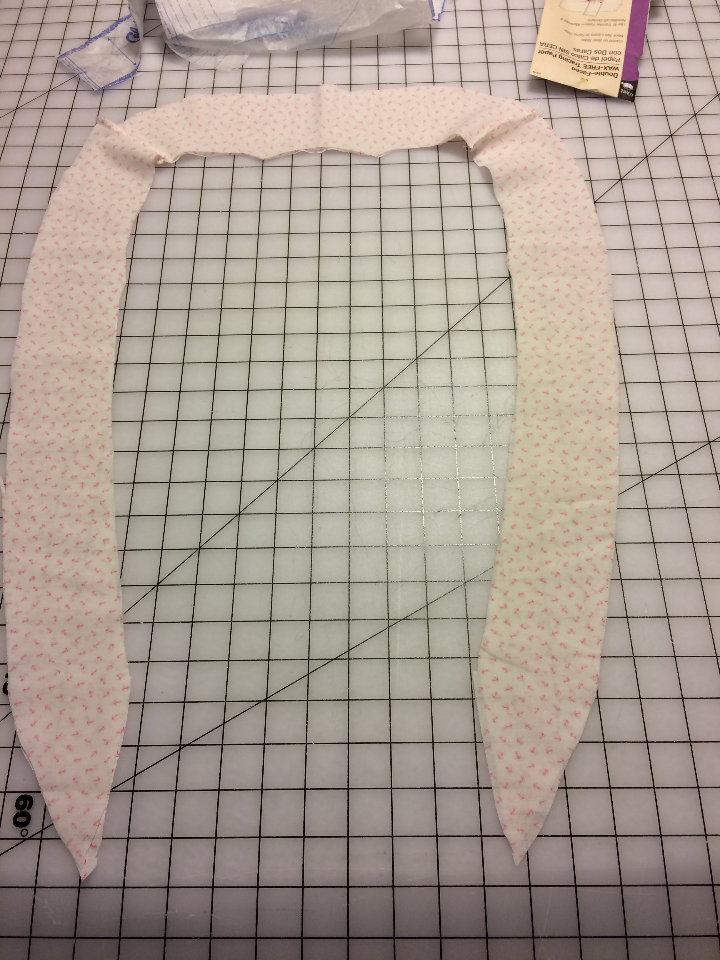 This top also features a loop to be sewn onto the front and I do admit having it there does make the tying the bow a bit easier and neater. That is if I am doing it correctly. I didn’t see instructions so I improvised at putting the bow loops through. Sewing that tiny loop together and then having to turn it right-side out was a real project! Luckily I have this pretty cool tool, called “that purple thang.” It helped me push some of the material through and it was also a huge help in getting the corners neater on the ends of my tie.
