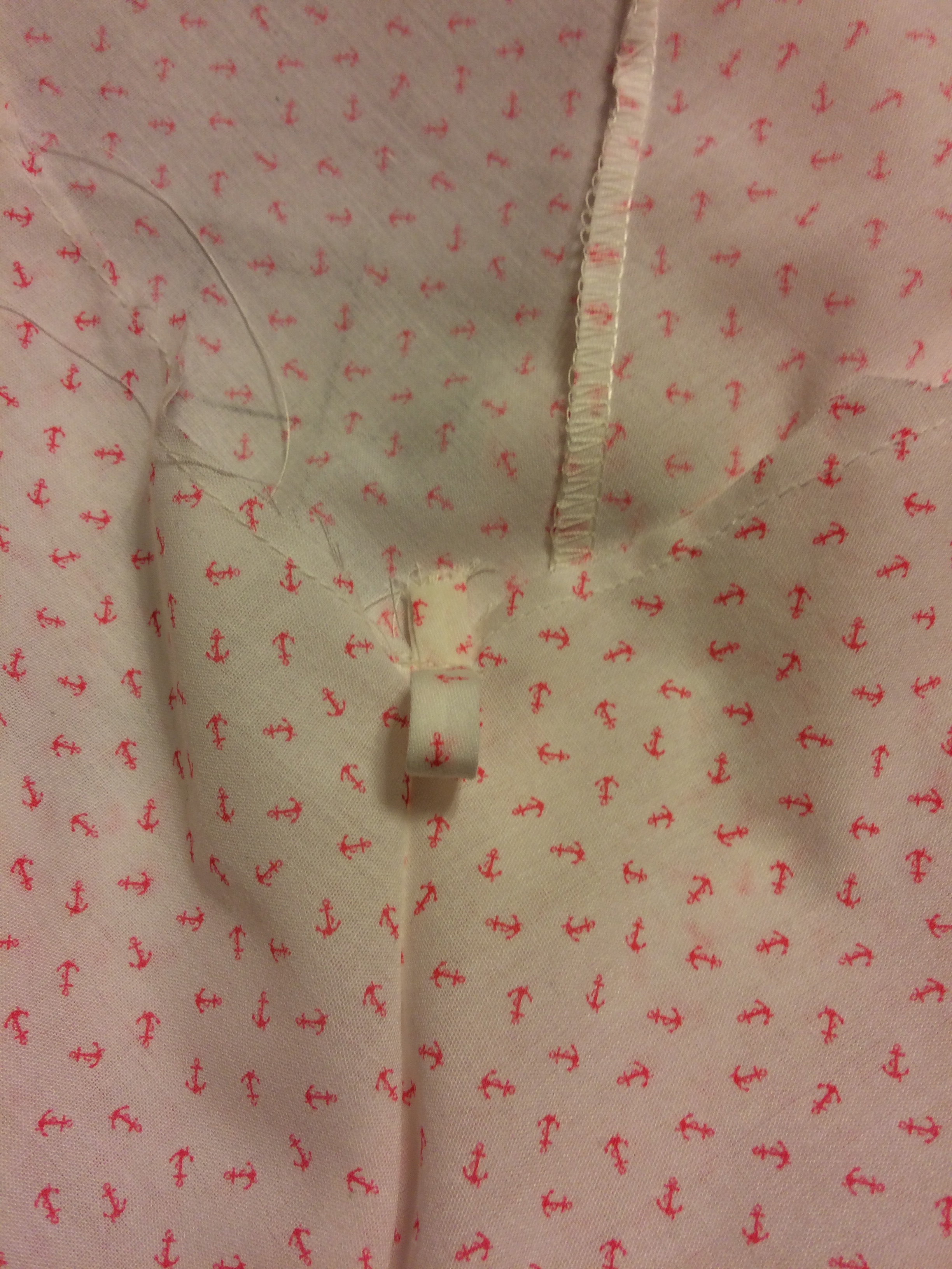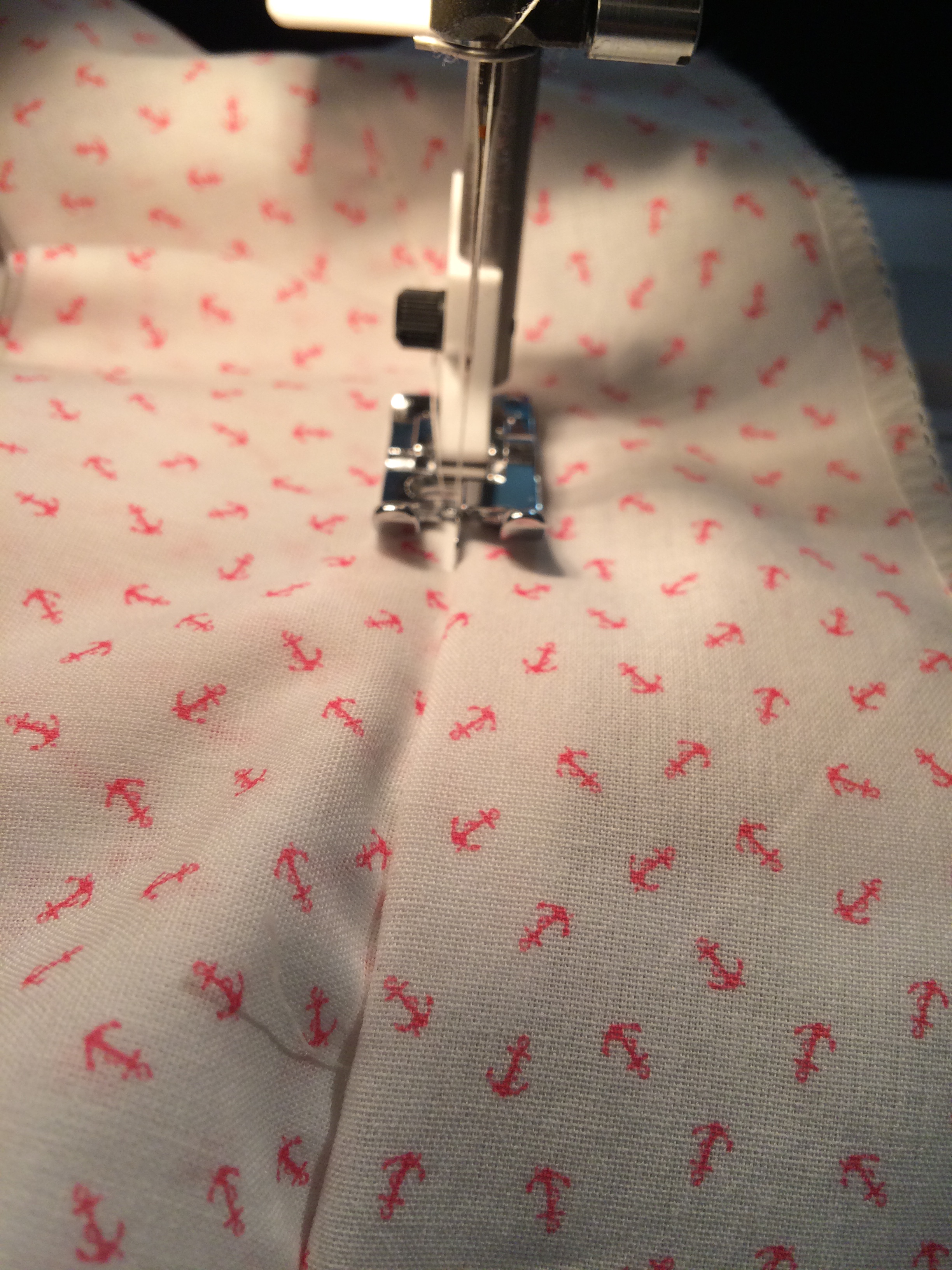 ‘Cuz the shirt has anchors on it…get it!! With this project, I finish up the last of the fabric I bought in Scotland back in 2014. This was a nice white cotton with cute little pink anchors on it and I believe I even got it at a discount (although still not cheap).