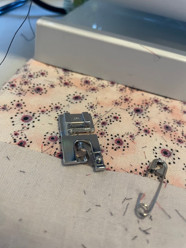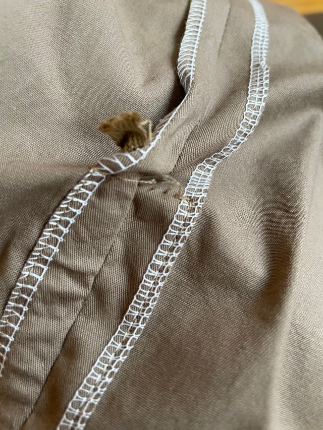 Another issue I had was making the casing on the side of the legs. The drawing made it look like I would sew a box for a casing before I inserted the twill tape with a safety pin. With the top of the casing sewn up, I had no way of removing the safety pin at the top so I could sew the twill tape in place. I finally had to undo the stitching to get the tape to come up to the top edge and then I sewed it in place to close up the casing. I’m not sure why this wasn’t described this way and the drawing seemed to show sewing this casing first. I’m baffled to how this would work, doing it this way.