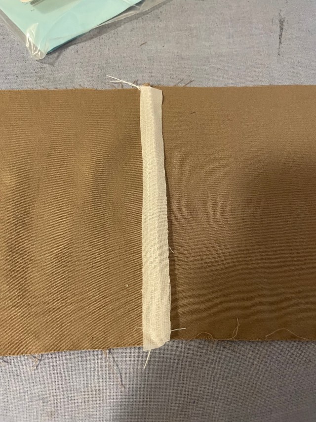 One of the things that tends to frustrate me about the Big 4 patterns, is that I sometimes come across directions that don’t make sense to me at first glance. On this pattern, it was telling me to keep the twill tape from getting stuck in the seam allowances when it’s inserted (into the waistband), use fusible web or machine basting to anchor “them” to garment within the casing area. It seems obvious now, but I was confused by why I would need to anchor the twill tape by basting it. Then I realized after re-reading the awkward sentence, the twill tape could get caught if I had sewed the waistband up with a regular unfinished seam. Since I had used a serger, I didn’t have giant seam allowances, but I did decide to iron some stay tape so the seam stayed flat. This would hopefully allow a smoother ride for my twill tape drawstring, around the waist.