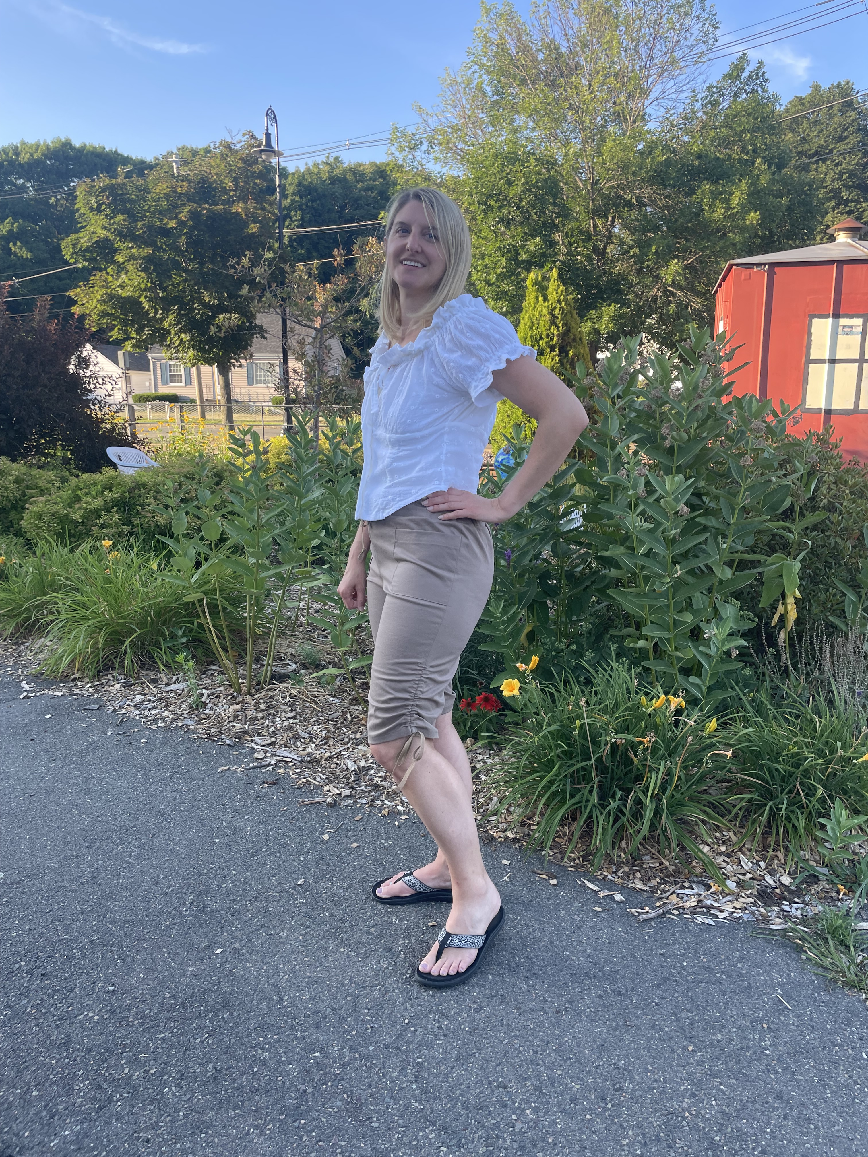 It’s time for another wardrobe builder and this time it’s for capri or three-quarter pants. I really like this style of shorter pants with the cinches up the side as I have a pair I purchased that I like to do light hiking in. The only problem with this pattern is that view C is technically shorts, even though they don’t look like it in the drawing. I ended up lengthening these a bit so they were more like capris, although the length is still on the shorter side. As is, they were a bit long for actual shorts anyways.