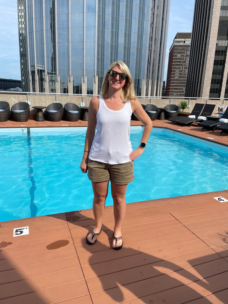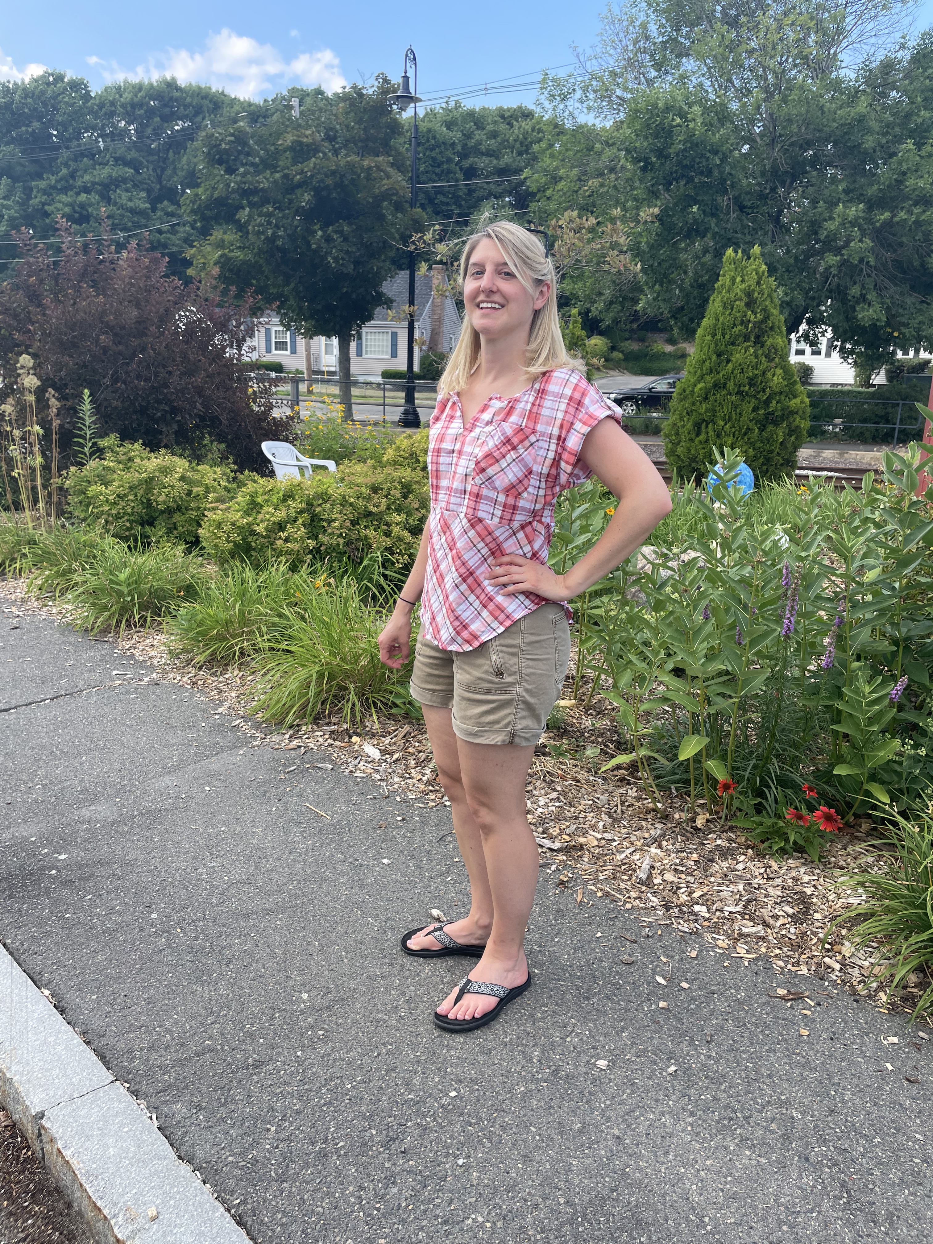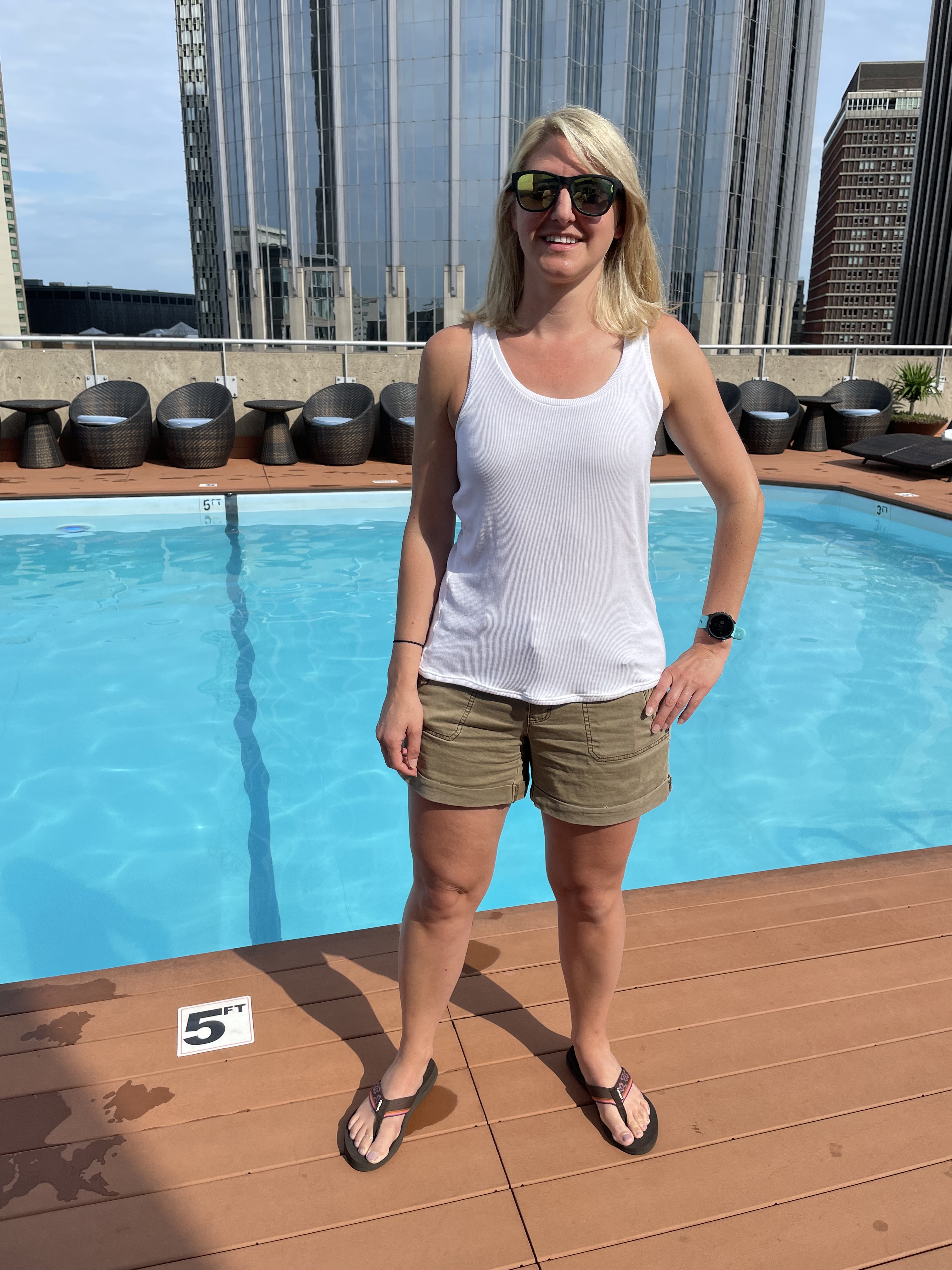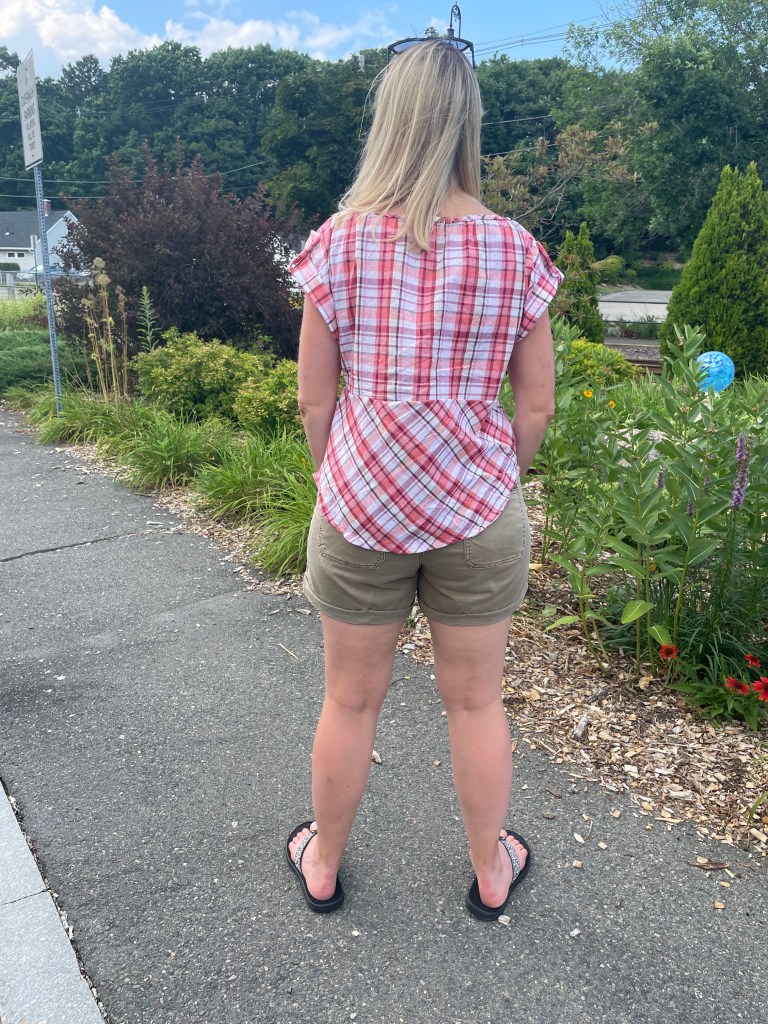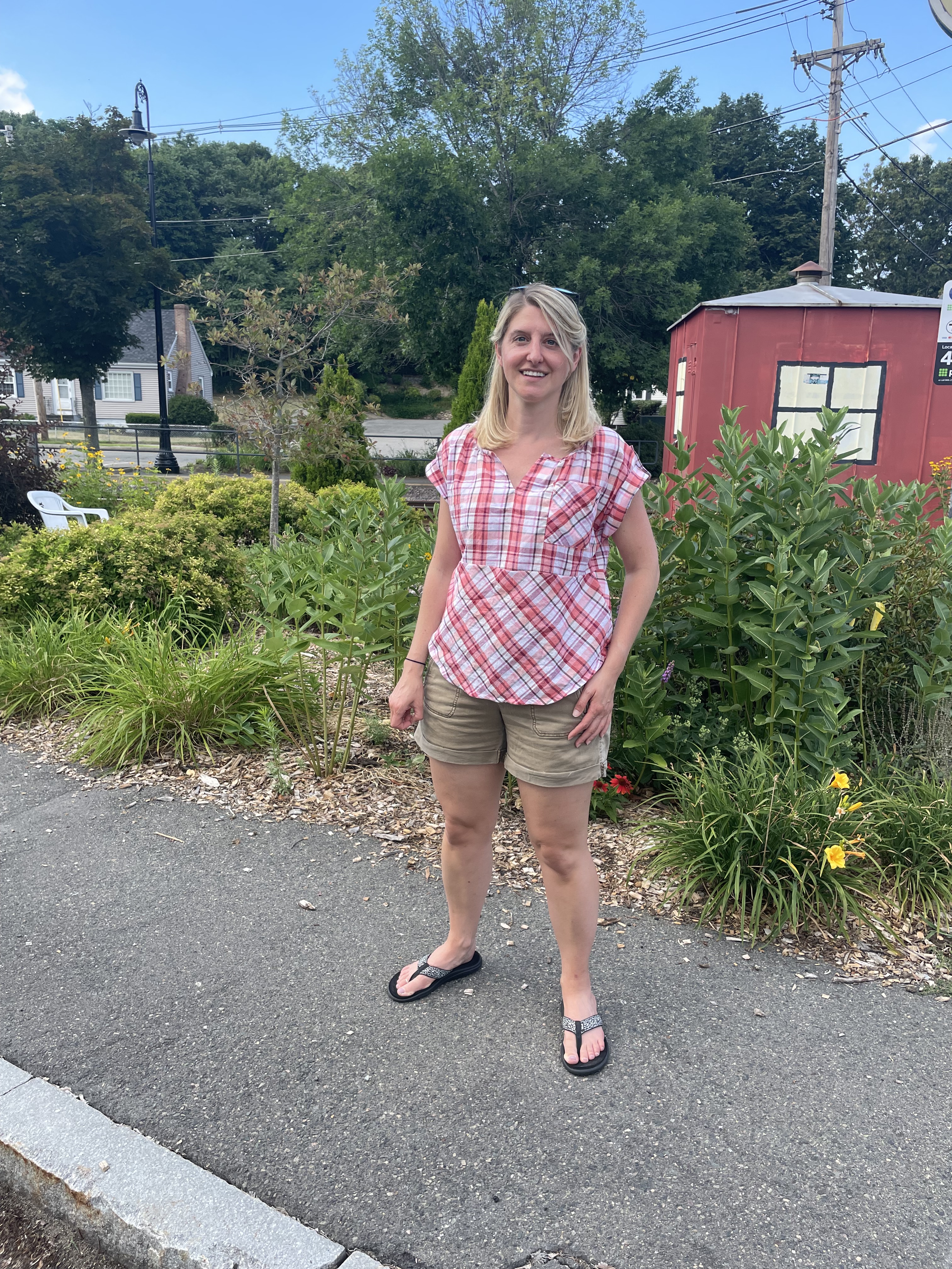 I wanted to make a basic ribbed white tank top. I searched a bunch of patterns (and there are a lot that are free for this type of thing) and settled on the Lago tank from Itch to Stitch. This was a free pattern that I already had in my stash and had the look I wanted – neck bands and arm bands, with a slight racerback-like style in the back.