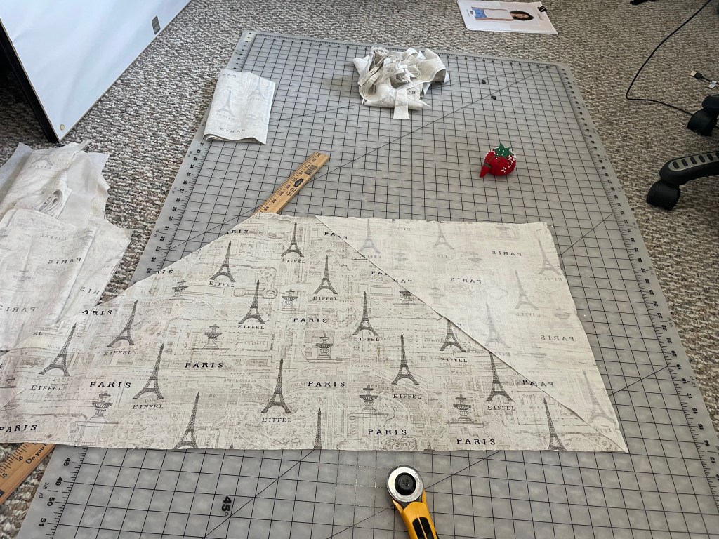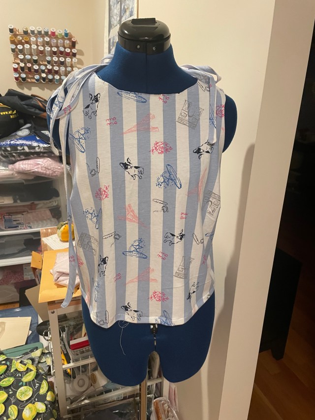 I made too much bias tape for the first tank, but I’m hoping what I cut out will make enough for this one. I’ve been dreading it and putting it off because there was just so much ironing with the last one, and I struggled with my bias tape tool for some reason – the fabric just kept moving and shifting to one side. I may need another tool that’s easier to use.