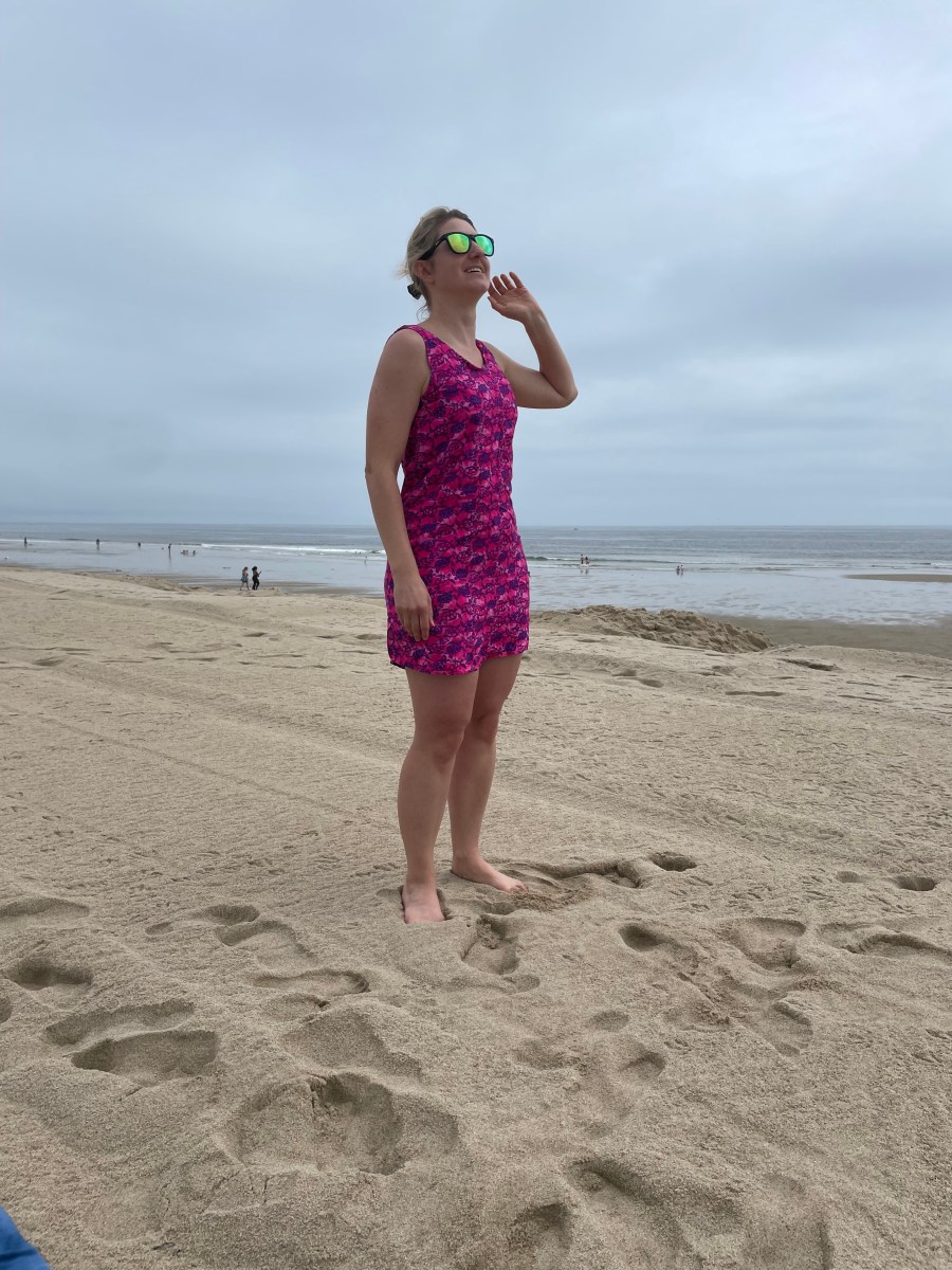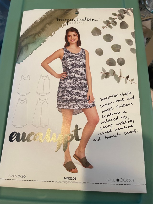 Now to try it with the real fabric. This is lighter weight so I think it will sew up nicely. However, I had thought it had just a slight stretch to it, but when I started cutting into it, I realized it’s pretty much a two-way stretch jersey. I’m still going to try it – the pattern doesn’t use too much fabric, so I will still have some fabric left for another top if this doesn’t work out the way I want it to. After seeing where the Paris tank landed, I decided to extend the pattern by 1.5 inches. That way I could wear it to work if I wanted or at least not feel self conscious wearing it when I’m not at my fittest.