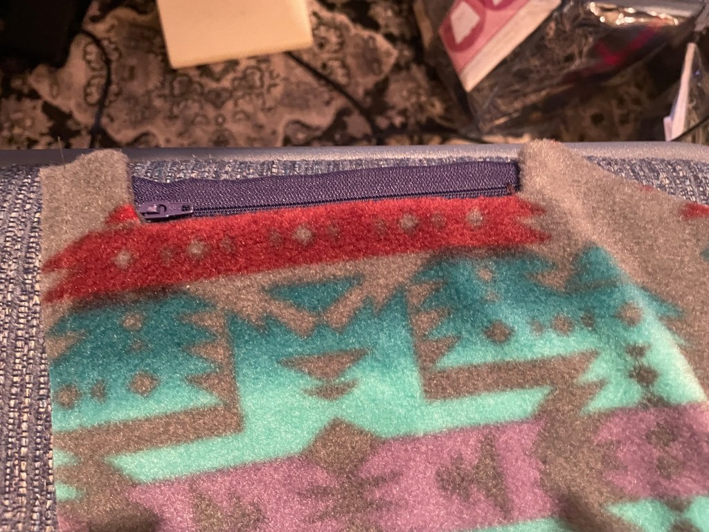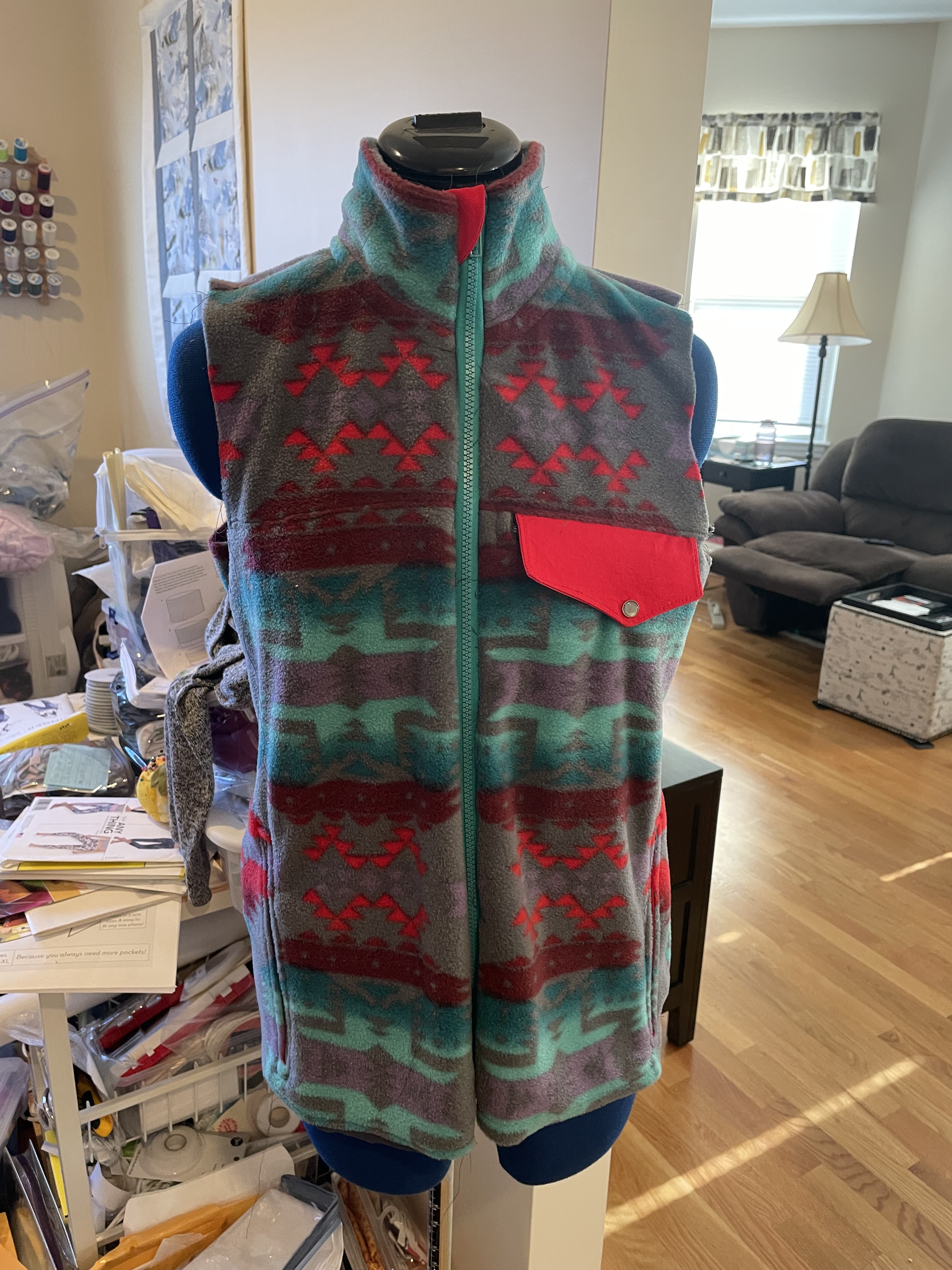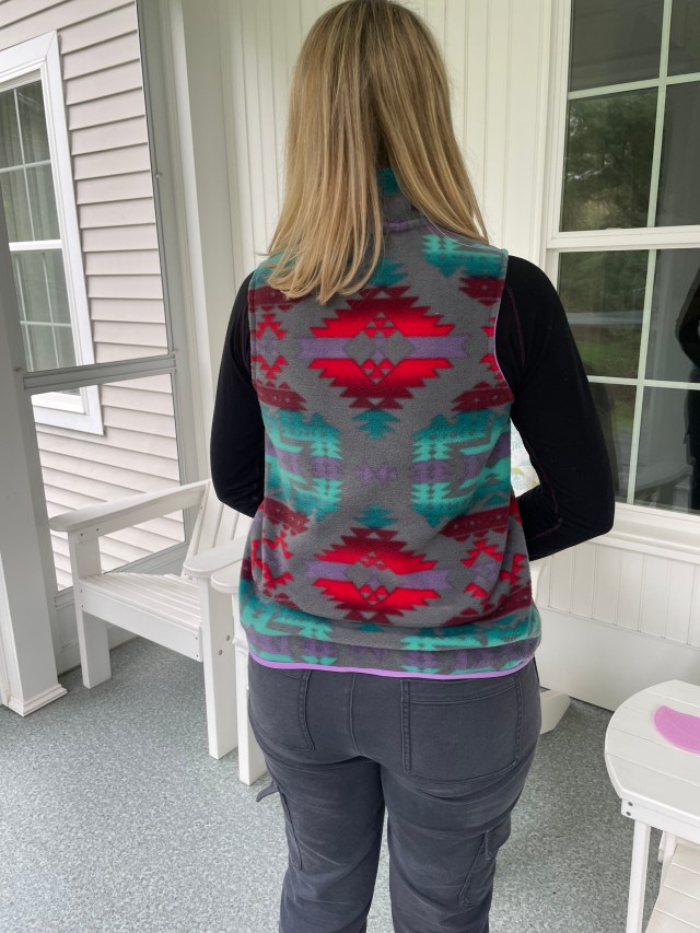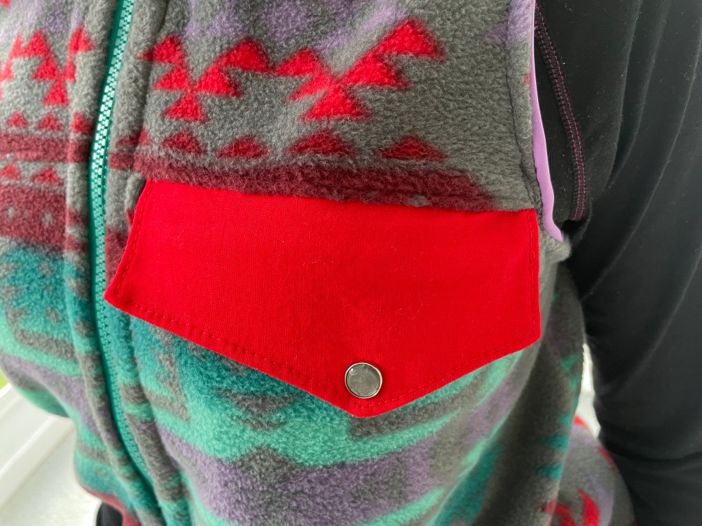 The constant cold and ongoing snow and ice storms have definitely not helped the depression that set in after the holidays. I haven’t wanted to do much of anything, the outside just seems too unforgiving and my current mood has killed any ambition I had in the first place. But this weather has caused me to pull some pieces of my wardrobe that I haven’t worn in awhile. One is my winter vest made with fleece that I got in the Southwest a few years ago. I made it last year, but didn’t get a chance to write about it. And now is the perfect time to do so, with all my current projects laying around, unfinished.