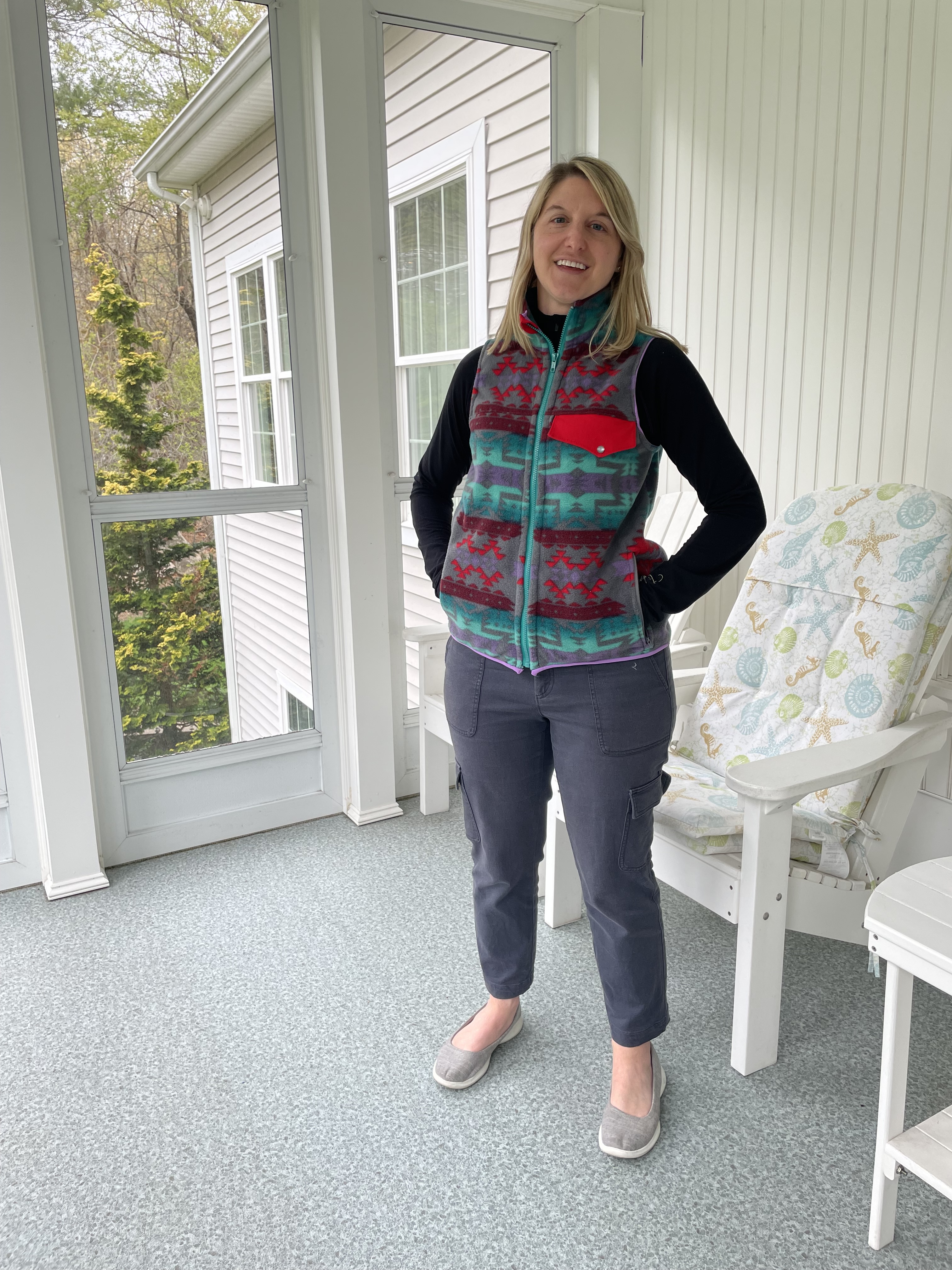 I had been looking for a pattern that had the style of a vest I would actually want to buy. I settled for the 5 out of 4 pattern, the Aspen vest. It even had zippered pockets, which is rare to find in these sewing patterns. My last vest did not have these and it’s tough when I want to anything remotely active.