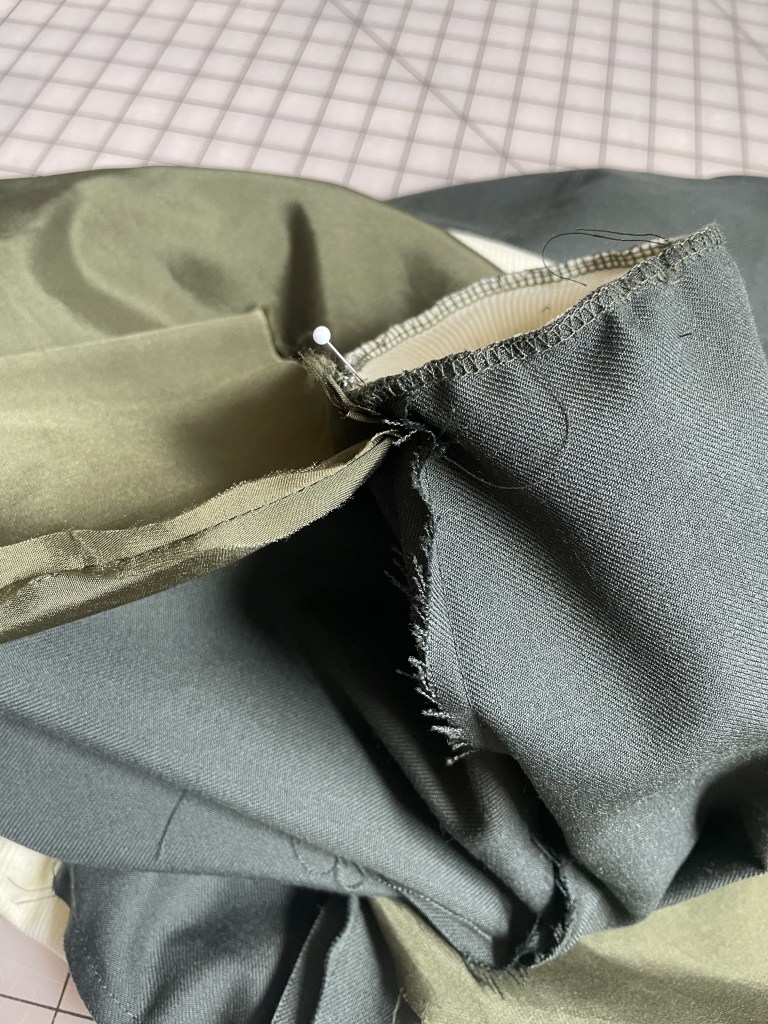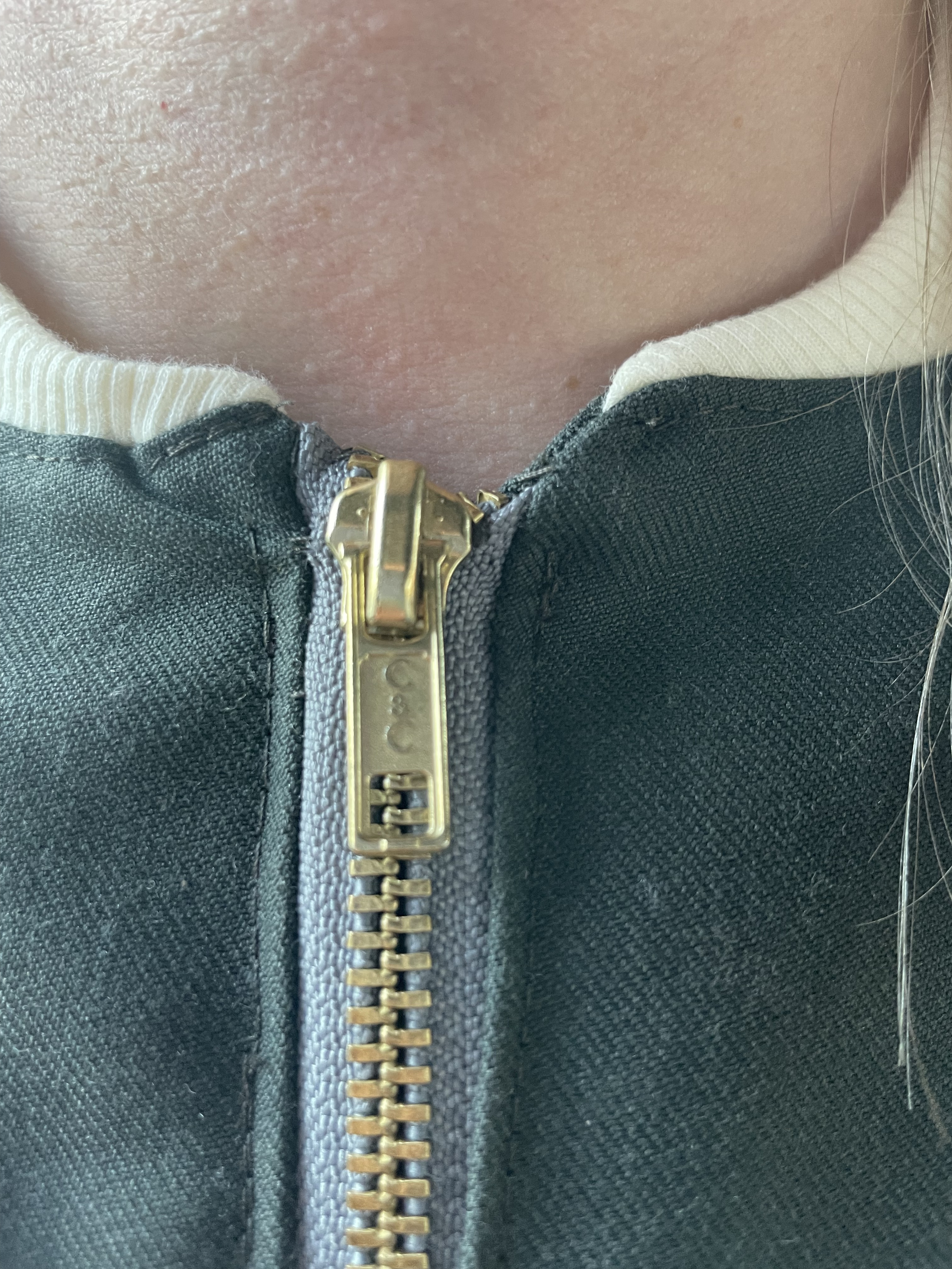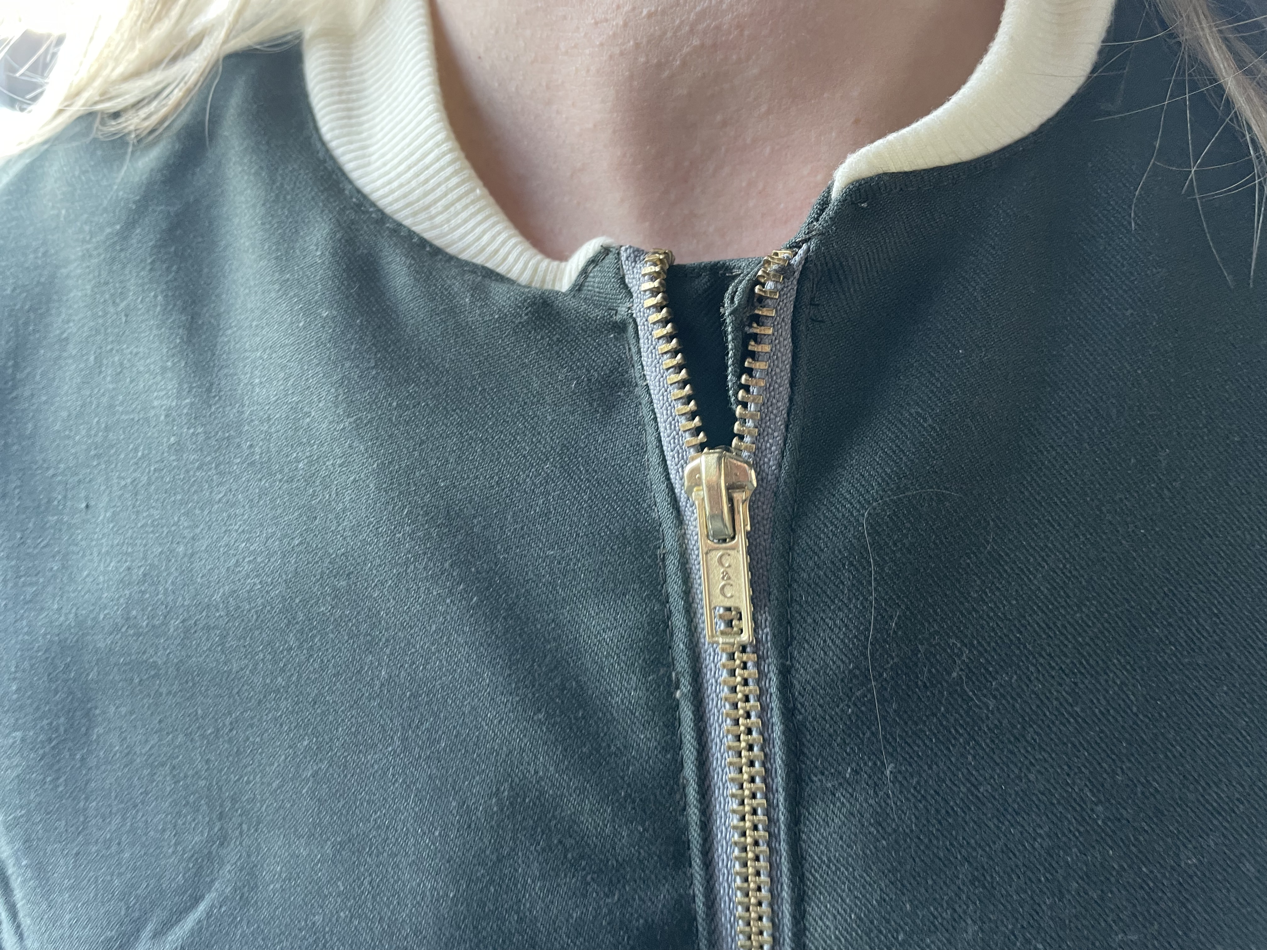 I think it all came together well, although I did have trouble finding a good zipper that matched the color. Speaking of the zipper, I also had an issue where the zipper was a bit too long for the jacket. I think partly it was the pattern, but also partly because I did shorten the length of the coat a bit. I’ve run into this issue before and with that garment, I just removed some of the teeth at the top of the zipper. Unfortunately since this was not a plastic zipper, no matter how hard I pulled with the pliers, I could not get any teeth off. And I really tried. I guess it’s good the zipper is strong and sturdy, but I basically had to just fold the zipper back into the seam, which looks a bit odd in that there is no real visible top to the zipper.